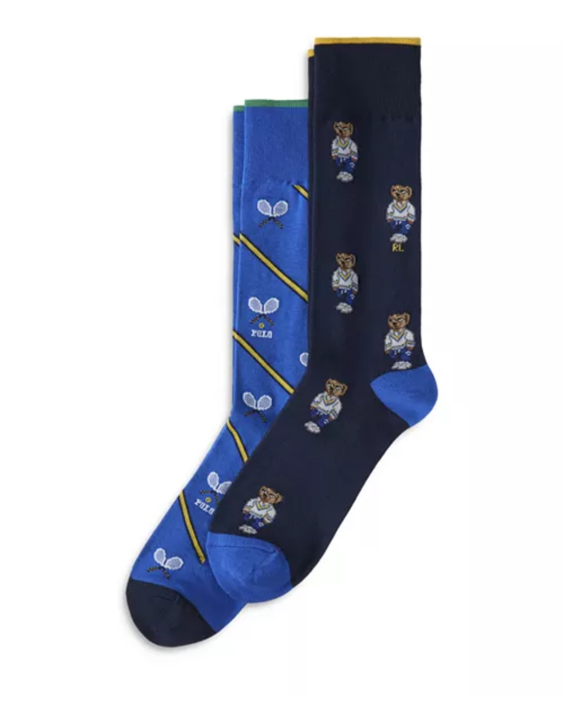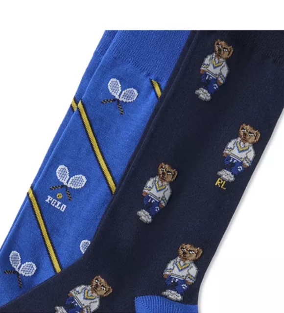 Ralph Lauren Tennis Club Polo Mini Bears Men's Dress Socks Size (10-13) 2-Pack NWT's Shipping 2-3 Days For Delivery By USPS Mail.